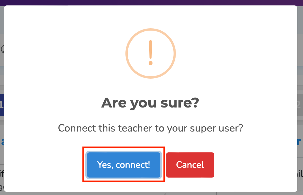 A popup will appear asking you if you are sure you want to connect the teacher you selected. Press the button that says "Yes, connect!"