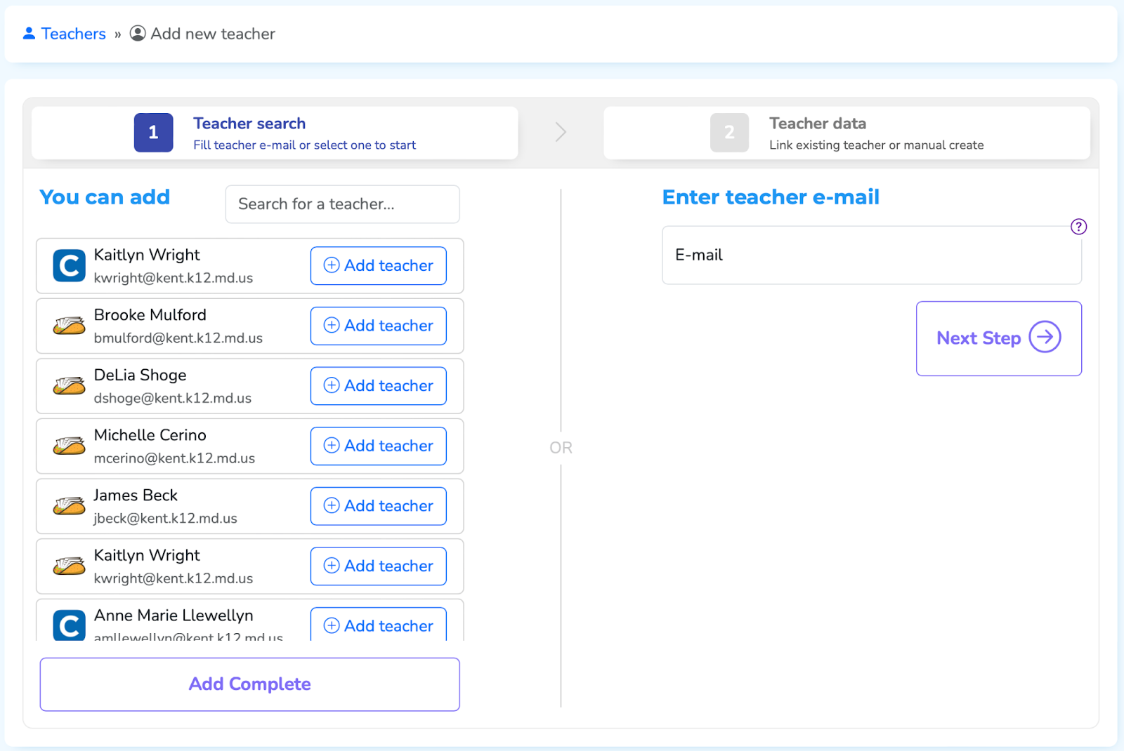 Press the "Add Teacher" button next to their name.
