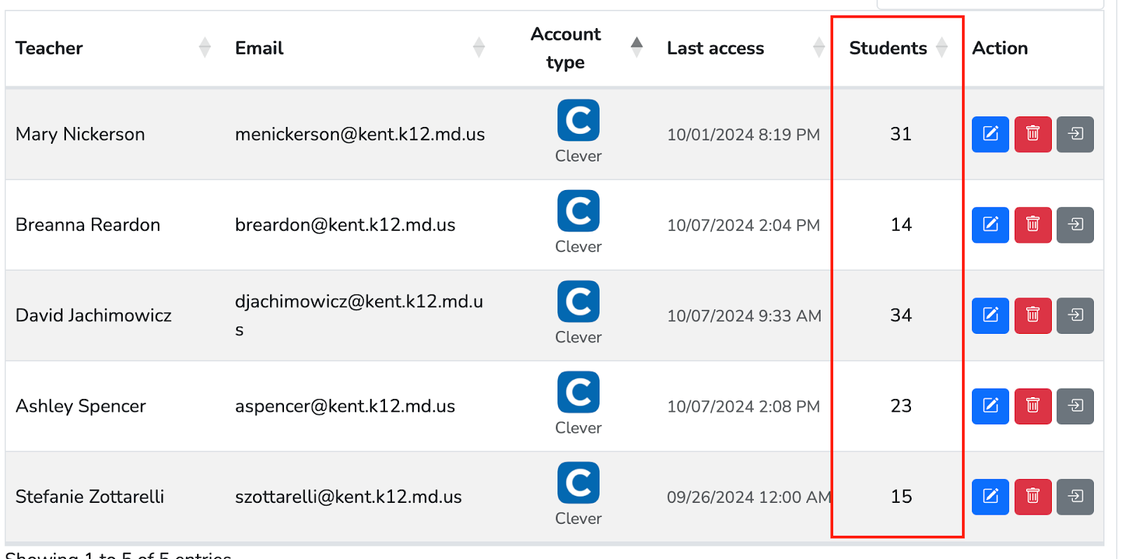 After this, the teacher will be added to your roster. This process should also automatically add all of the students attached to that teacher's Clever account.