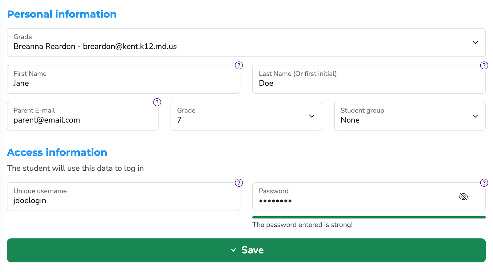 You can then manually enter all of the student's personal information and click the "Save" button. This will add the student to your Book Taco roster.